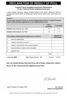 Torpoint Parish Neighbourhood Plan Referendum for the Torpoint Parish neighbourhood area I, Holly Gamble, being the Deputy Counting Officer at the above referendum held on Thursday 30 October 2025, do hereby give notice that the result of the votes cast is as follows: